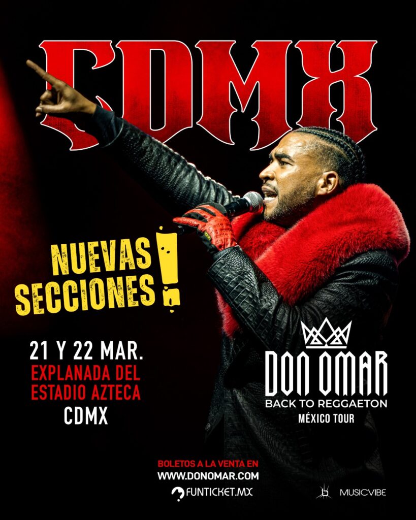 Pero eso no es todo. Debido a la increíble demanda y para que nadie se quede fuera de esta gira histórica, se han habilitado NUEVAS ZONAS en los conciertos programados en la Ciudad de México. Los días 21 y 22 de marzo, Don Omar llevará su espectáculo a la Explanada del Estadio Azteca, donde ofrecerá un show que redefinirá los estándares de los conciertos de música urbana en el país.