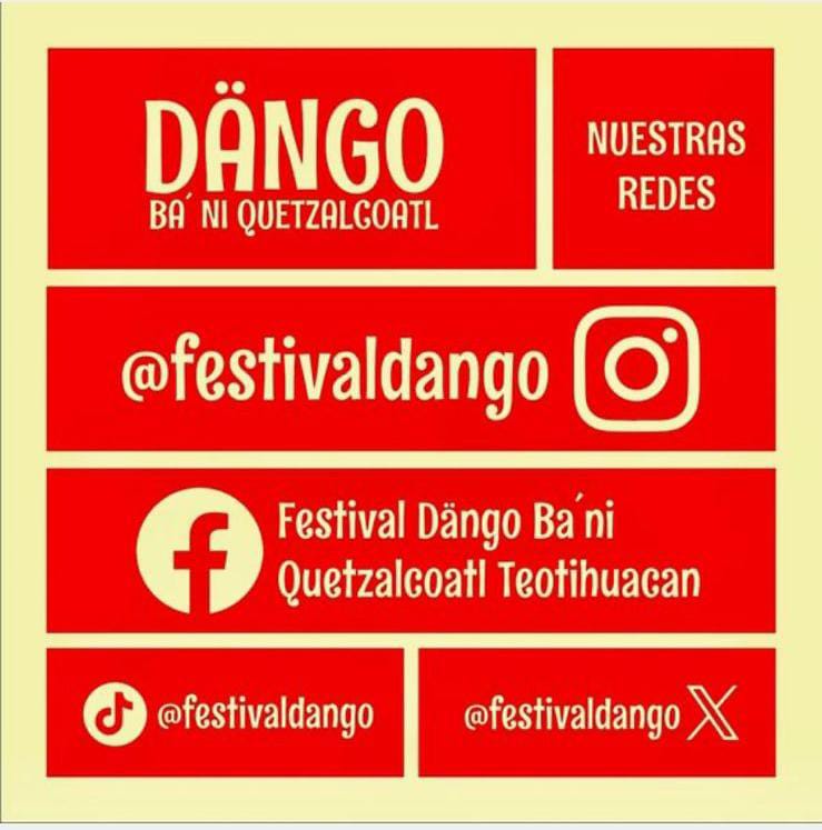 Más Información y Redes Sociales Para quienes deseen más detalles sobre el festival, programación, actividades, amenidades y actualizaciones, el Festival Dängo Teotihuacán Ba’ni Quetzalcóatl pone a disposición de todos sus redes sociales, accesibles en https://linktr.ee/festivaldango, donde se publicará información adicional para asegurar que los asistentes no se pierdan nada de esta experiencia que fusiona lo moderno con lo ancestral.